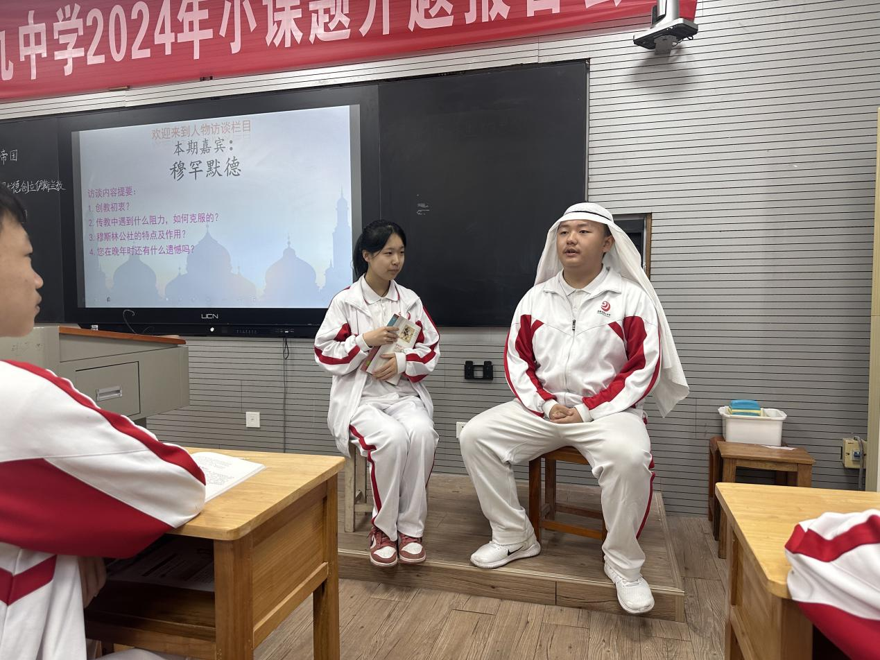 参与对象为“梧桐花开”2024 届新任教师培训学员,培训地点为岳阳市九中综合楼北五楼录播室。主持人凌婧瑶老师发言后,成员们一起观摩杨紫珺老师的示范课《阿拉伯帝国》。课堂以“巴以冲突”的视频导入,与时事政治紧密结合,同时也激发了学生的学习兴趣。