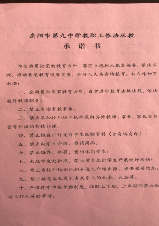 4月9日,学校组织全体教职员工学习了《关于全面深化新时代教师队伍建设改革意见》(以下简称“意见”)。本次学习活动由杨发明校长亲自主持和讲解,学习围绕“依法执教、立德树人,做新时代合格的人民教师”的主题展开,杨校长先带领全校教职工学习了《意见》的六个方面:一、坚持兴国必先强师,深刻认识教师队伍建设的重要意义和总体要求;二、着力提升思想政治素质,全面加强师德师风建设;三、大力振兴教师教育,不断提升教师专业素质能力;四、深化教师管理综合改革,切实理顺体制机制;五、不断提高地位待遇,真正让教师成为令人羡慕的职业;六、切实加强党的领导,全力确保政策举措落地见效。接着,杨校长就依法执教、立德树人对全体教职员工提出了要求,并在会上组织全体教职工签订了《岳阳市第九中学依法从教承诺书》。