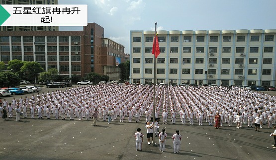 9月3日,鲜艳的五星红旗伴随着雄壮的国歌声在九中校园冉冉上升,学校新学期首次升旗仪式隆重举行。