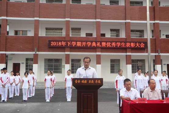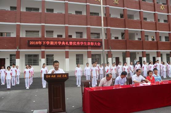 开学典礼第一步,进行了庄严的升旗仪式,全校师生向国旗敬礼。接着杨发明校长为新学期开学典礼致辞。首先对全体教职员工表达了节日的祝福!然后在讲话中他肯定了上学期全体师生所做出的努力和所取得的优异成绩,中考和生地会考交出了满意的答卷。并从“校训”开篇,鼓励全体师生再接再厉、齐心协力、开拓进取。最后,杨校长从 “新起点”“新挑战”“新希望”三个方面给全校师生提出了要求和希望。
