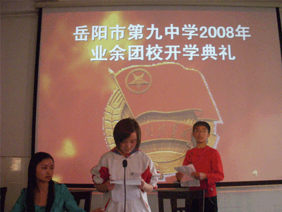 为了满足学生积极上进的需要。切实加强中学生思想政治工作,系统的了解中国共产注意青年团的性质、任务,于2008年11月9日在多媒体教室举行了业余团校开学典礼。